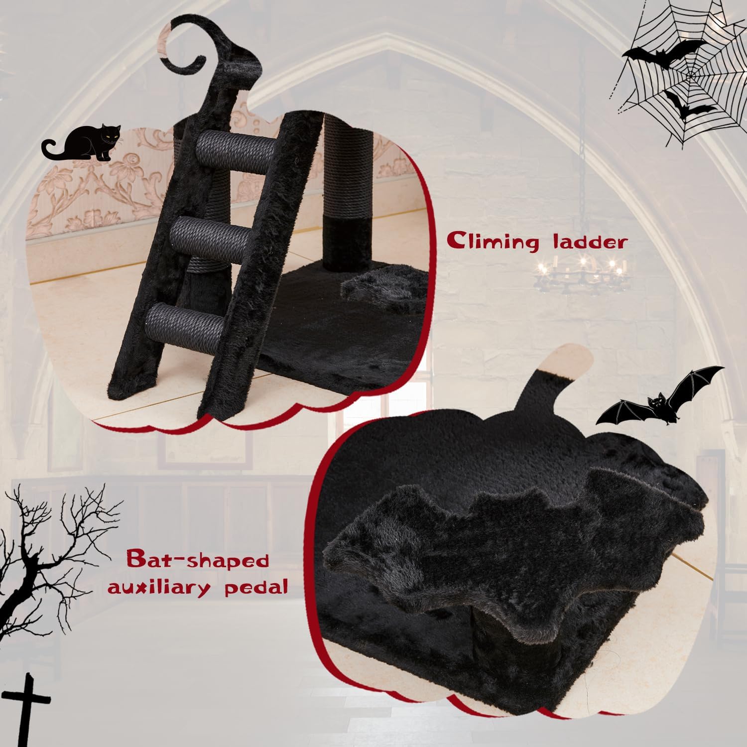 - INNOVATIVE DESIGN, STYLISH & BEAUTIFUL: Our Cat Tree adds many gothic elements for the gothic cat lover: bat shaped auxiliary treads, coffin shaped cat bed, spider web platform, spider toys. A perfect blend of fashion and function to create a gothic paradise for your beloved feline companion.