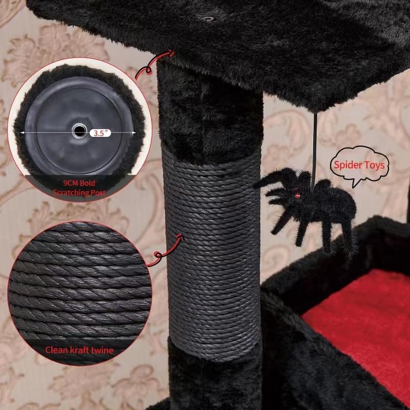- Gothic Style Design: Using black and red plush fabric and black kraft twine covered scratching posts, the entire cat tower looks darker and more elegant. It is a cat furniture that can attract cat attention and a unique Halloween home decoration.